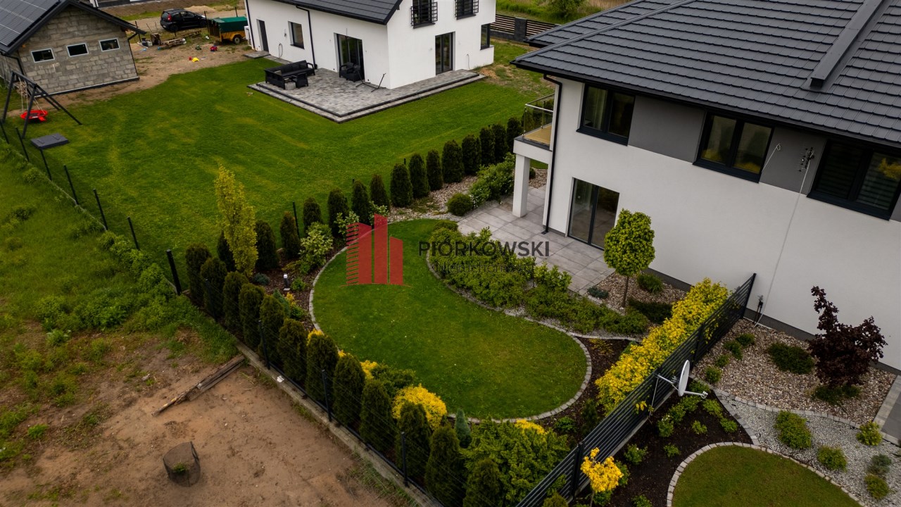 Ten nowoczesny dom, wykonany z najwyższej jakości materiałów, ogrzewany gazem, z garażem oraz przepięknym ogrodem o powierzchni ok. 300 m², przygotowanym przez ogrodnika z pasją, to doskonałe miejsce do życia dla osób szukających komfortu, prywatności i bliskości natury.