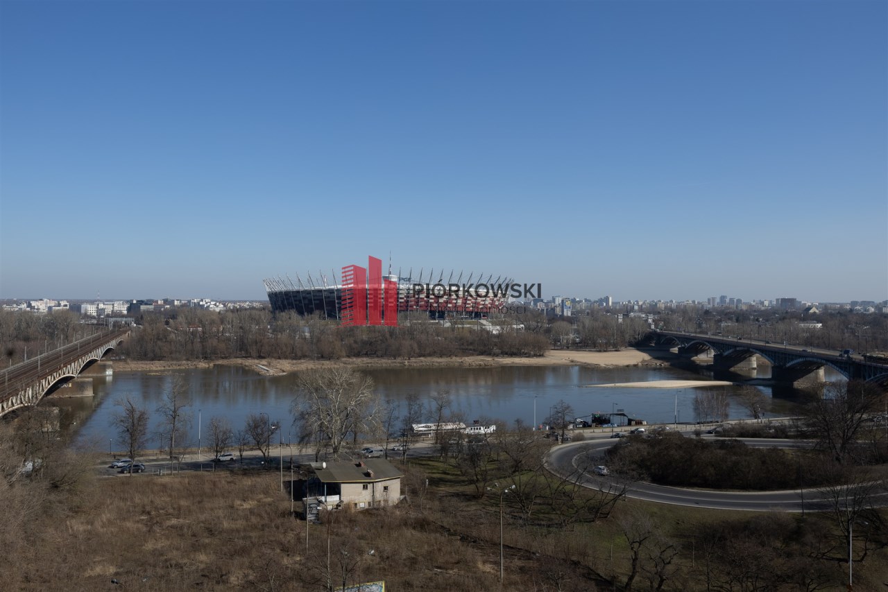 Z kolei okna w salonie i sypialni wychodzą na stronę wschodnią – z widokiem na Wisłę oraz Stadion Narodowy. Z mieszkania rozciąga się szeroka panorama prawej części Warszawy.