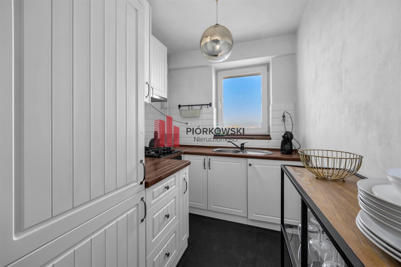 Kuchnia posiada okno z widokiem na dachy Śródmieścia, w kierunku Starego i Nowego Miasta.