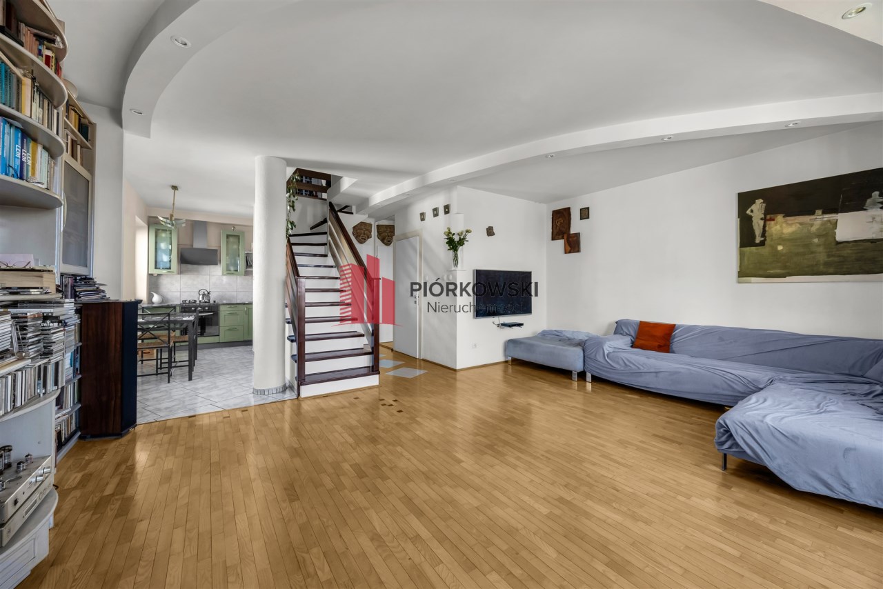 Mieszkanie jest dwupoziomowe. Powierzchnia ujawniona w księdze wieczystej wynosi 91 m², natomiast powierzchnia liczona po podłodze to ok. 116 m² (z uwzględnieniem dodatkowych schowków), co wynika ze skosów na poddaszu. Istnieje wydzielenia 4 pokoju.