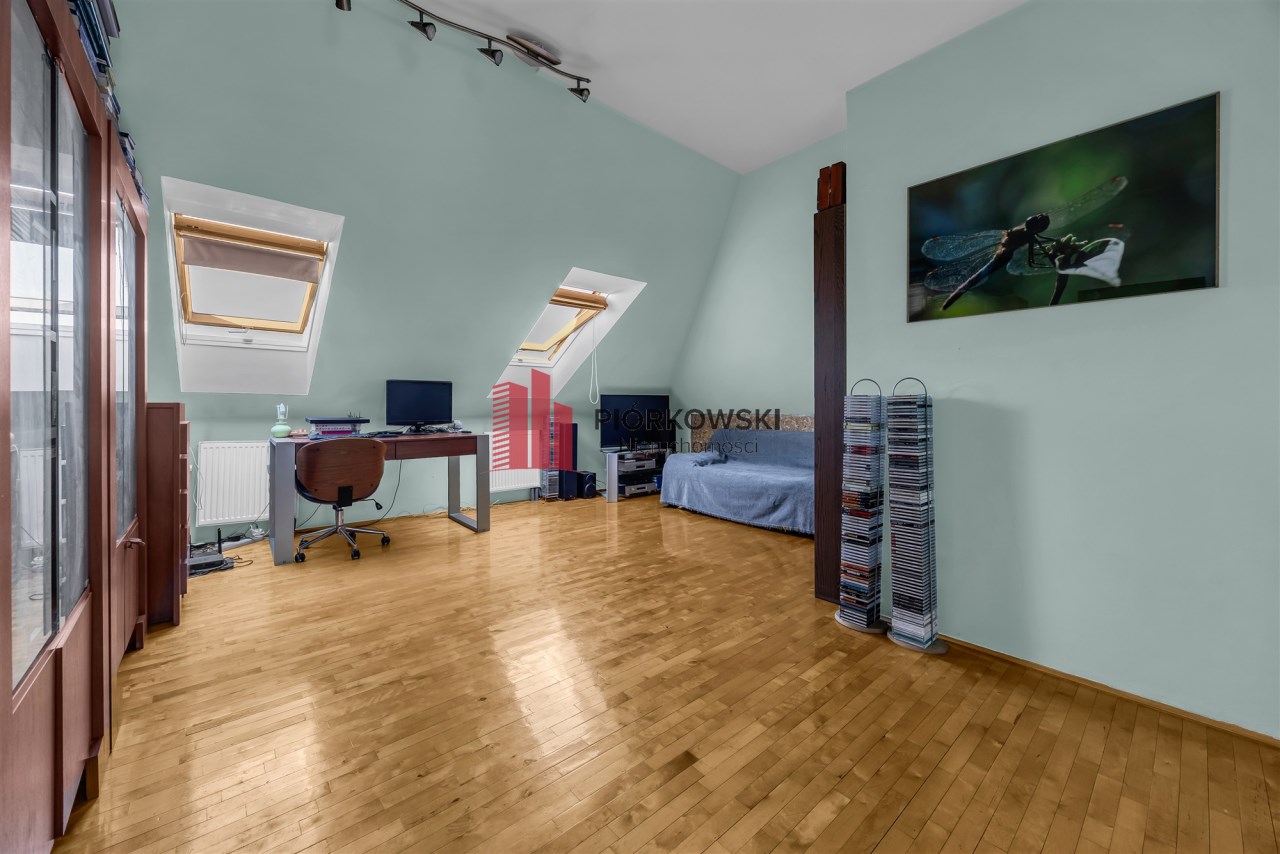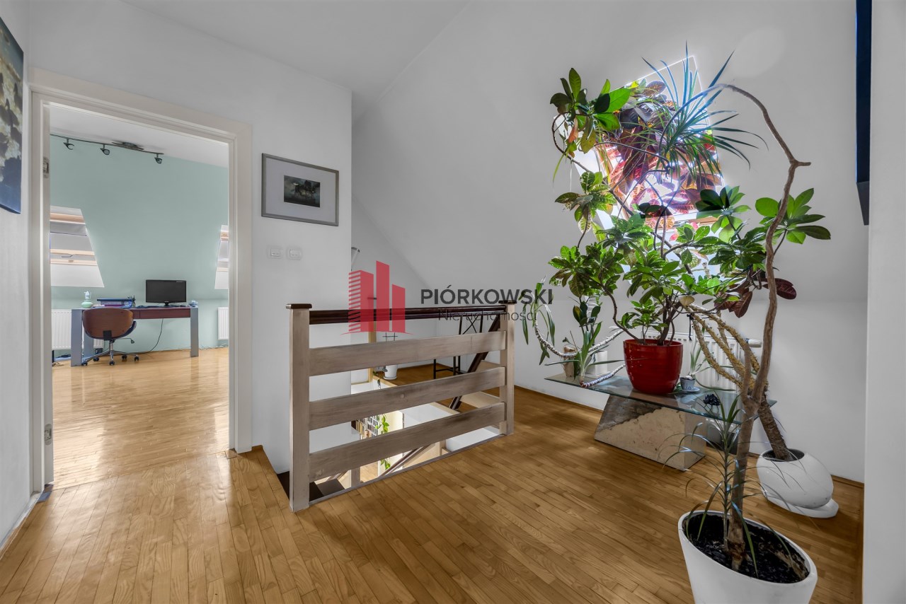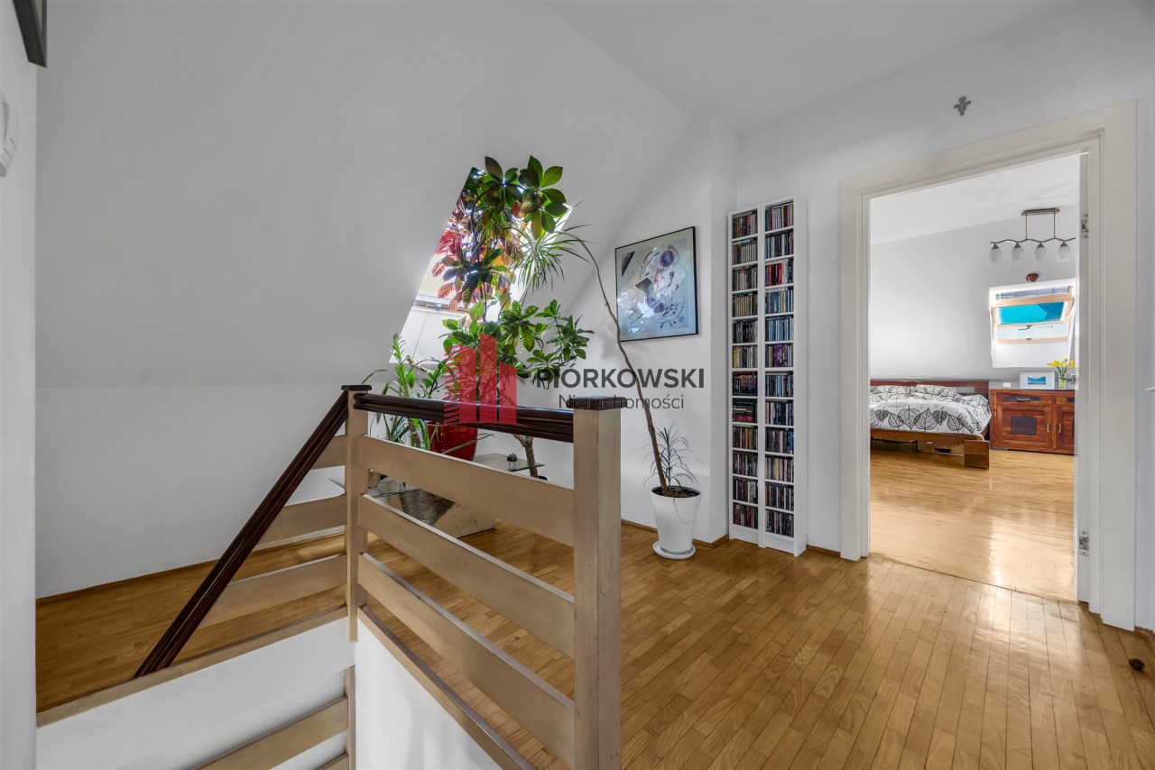 Lokal jest w stanie dobrym – obecnie zamieszkuje go rodzina. Termin wyprowadzki do indywidualnego ustalenia. Mieszkanie jest zadbane i czyste, widać naturalne ślady użytkowania a wykończenie pochodzi sprzed kilku lat. Bez problemu można wprowadzić się od razu i mieszkać bez ponoszenia dodatkowych kosztów. Pod względem wykończenia podłóg: na dole oraz w holu na górze znajduje się parkiet jesionowy, w większej sypialni na poddaszu parkiet wiąz z grabem, natomiast w mniejszej sypialni parkiet brzozowy.