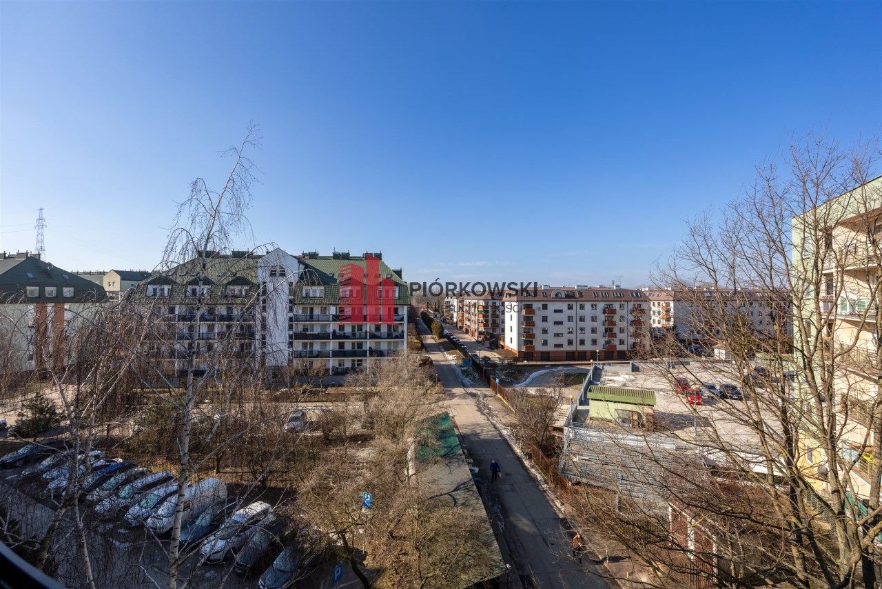 Z okien rozpościera się przepiękny widok na okolicę – dachy, korony drzew oraz zachody słońca. Przy balkonie z jednej strony widoczne są korony drzew (brzoza), a z drugiej dąb czerwony.